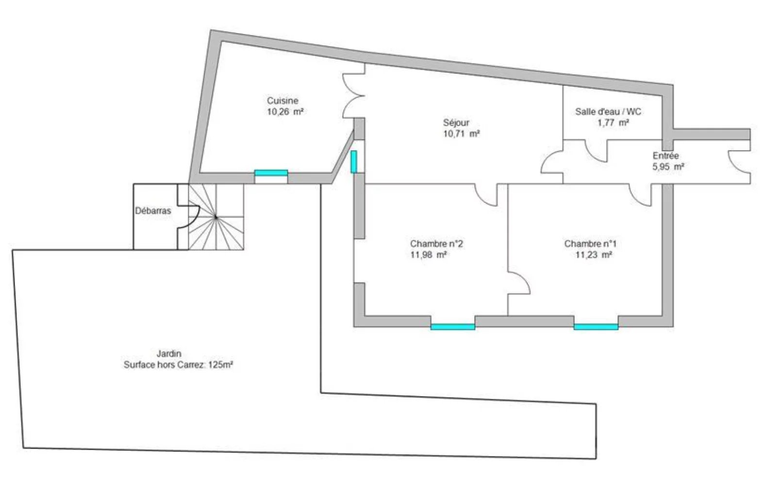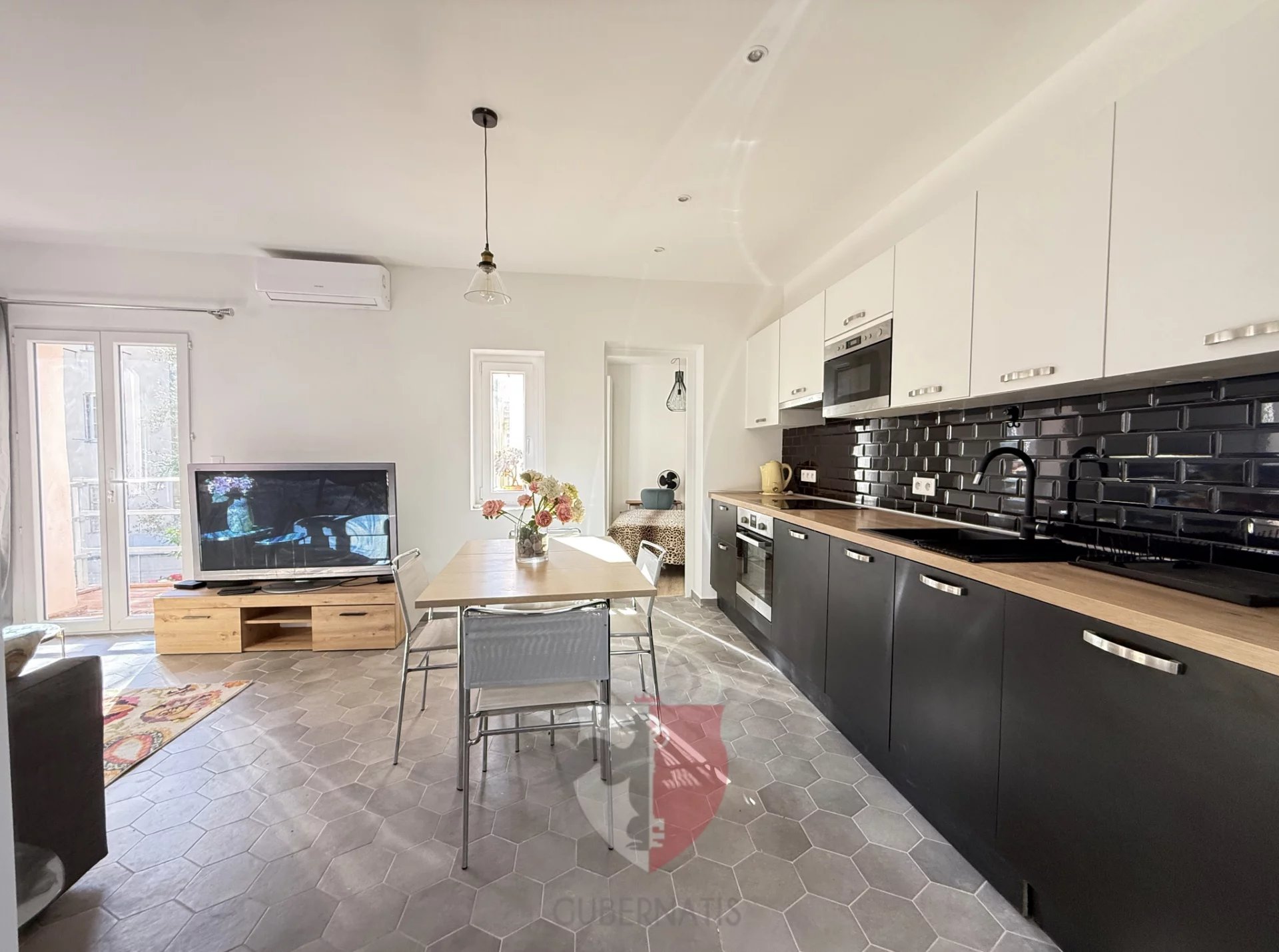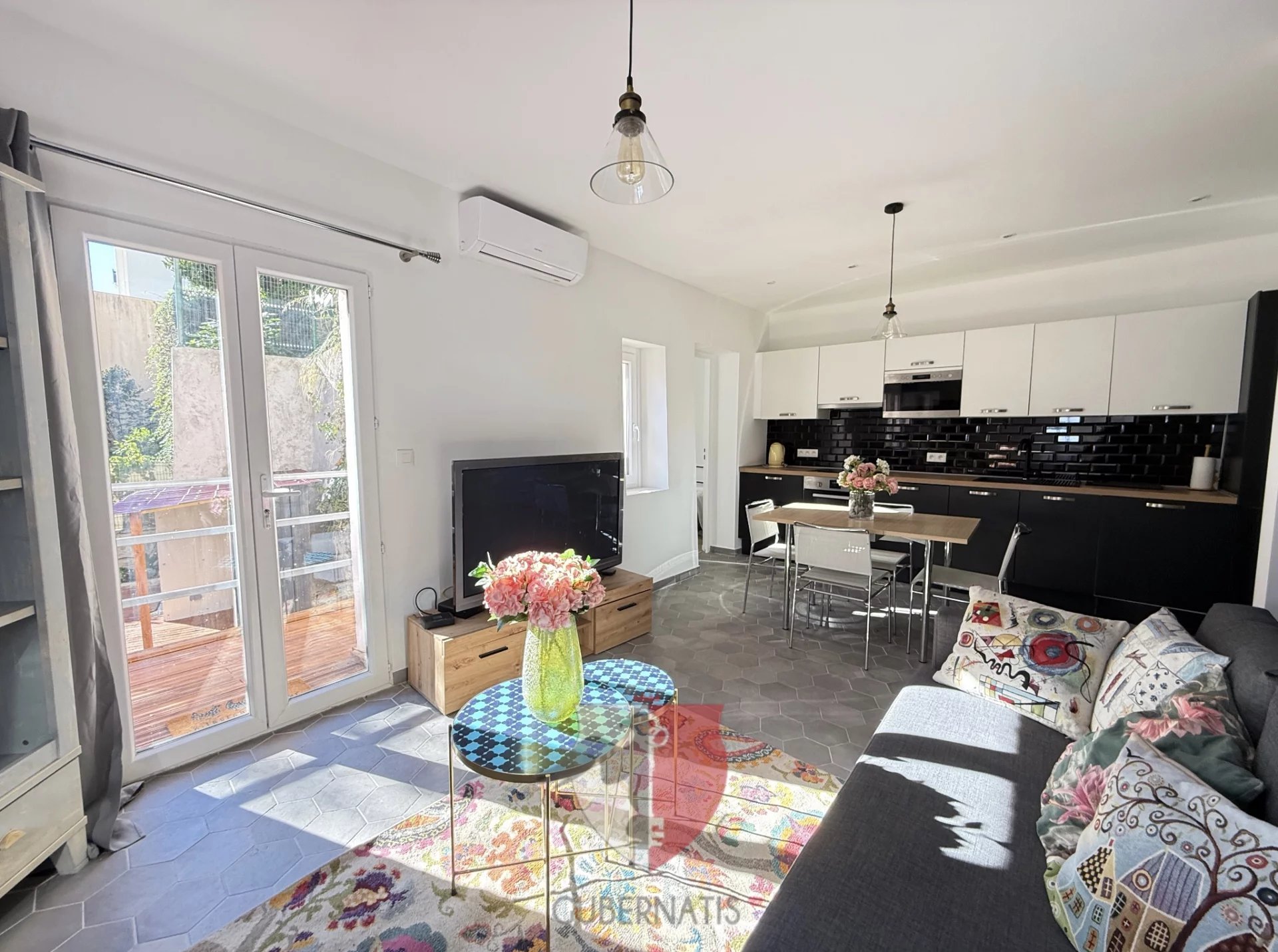 le bien est entièrement refait avec beaucoup de goût, il est composé d'une entrée, 2 chambres, séjour avec cuisine US équipée, salle de douche wc, terrasse et jardin sur 2 niveaux.