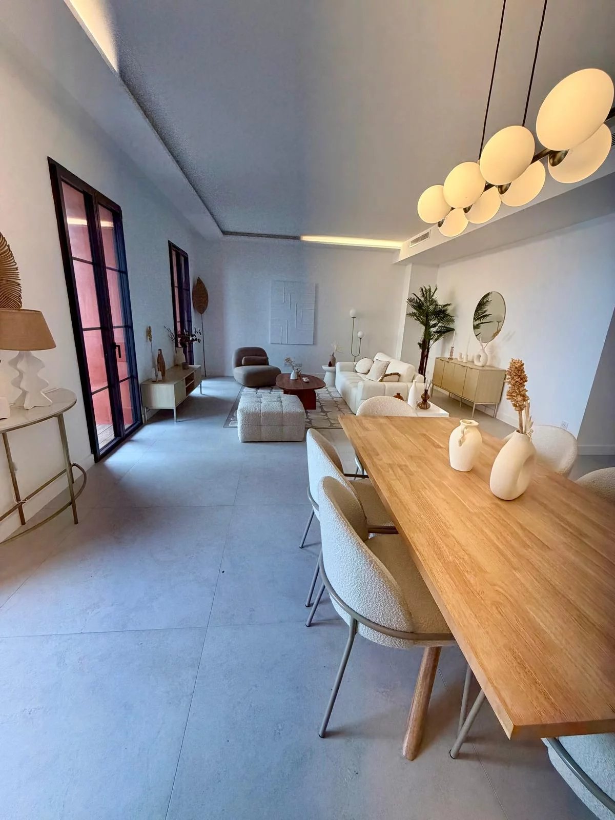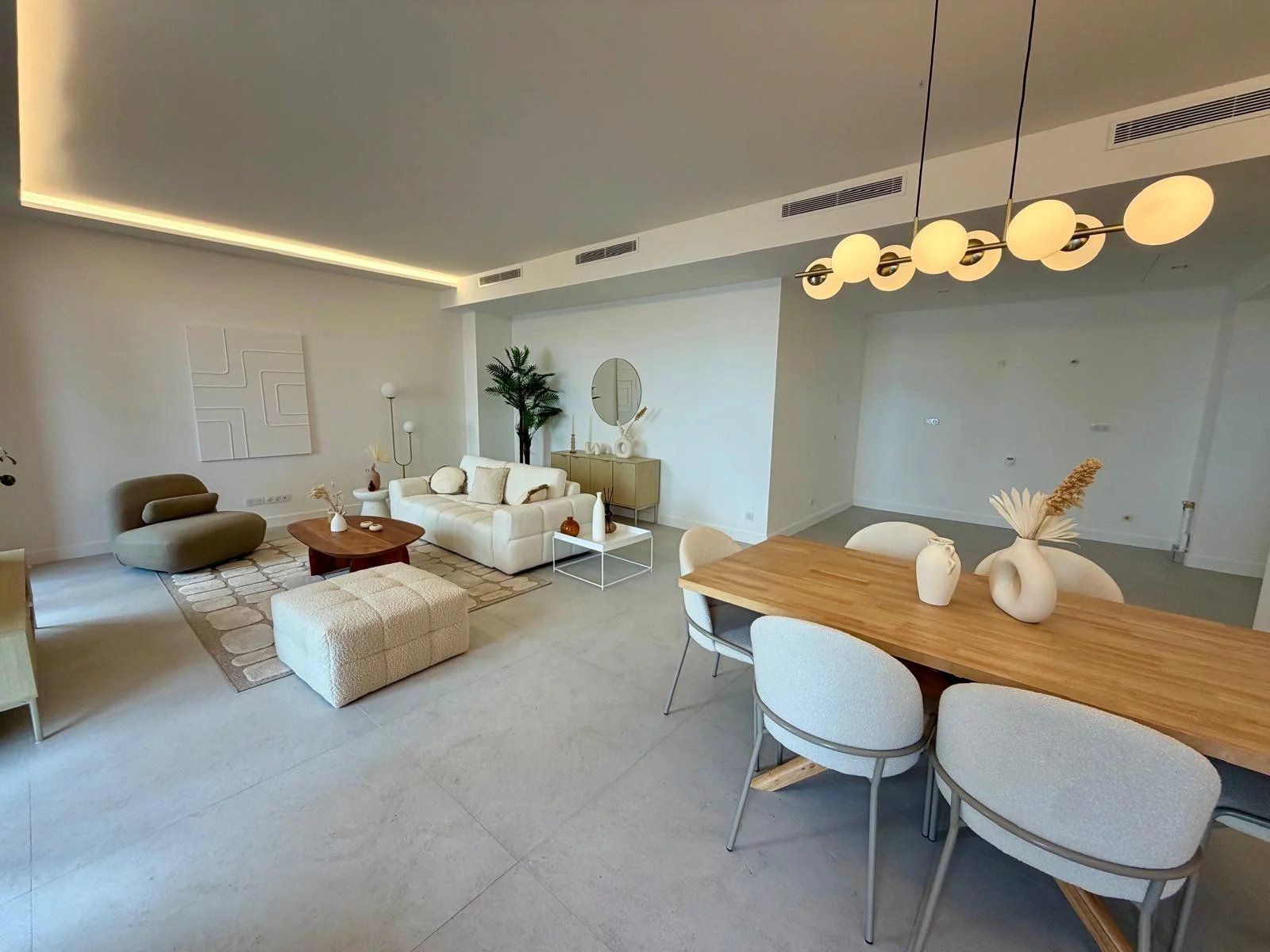 Dès l’entrée, vous serez séduit par un double séjour lumineux de 51 m², ouvert sur l’extérieur, où la Méditerranée s’invite dans votre quotidien. Le regard se perd sur une vue panoramique à 180°, embrassant les îles de Lérins et la baie de Cannes — un spectacle vivant, du lever au coucher du soleil.